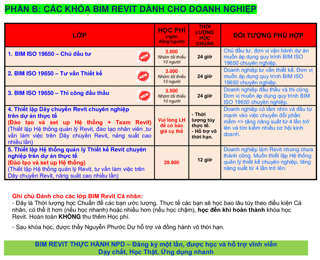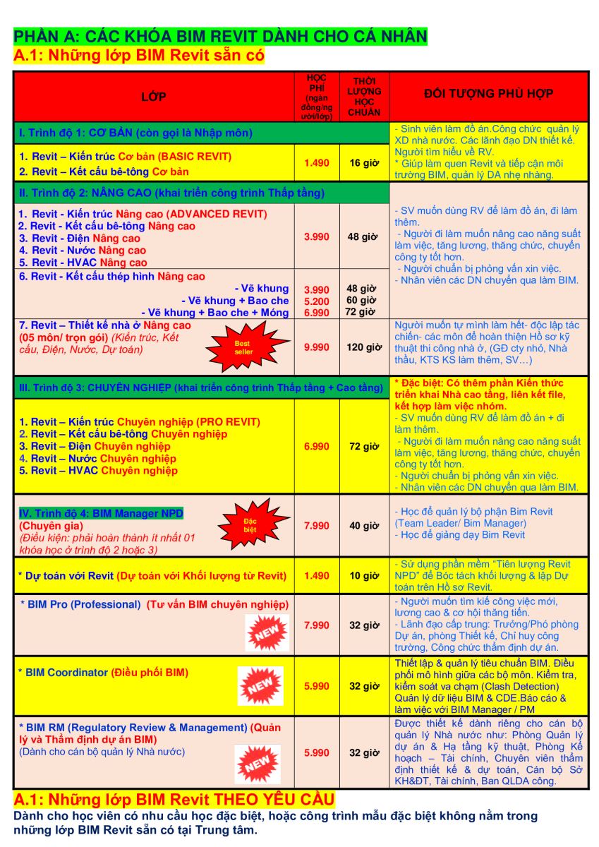 HỌC PHÍ CÁC KHÓA BIM REVIT