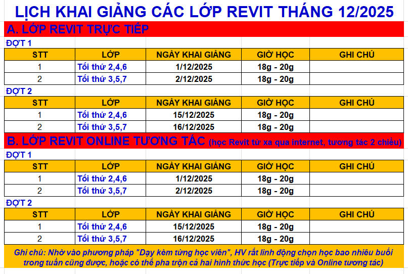 CÁC KHÓA HỌC REVIT THÁNG 10,11,12 NĂM 2025