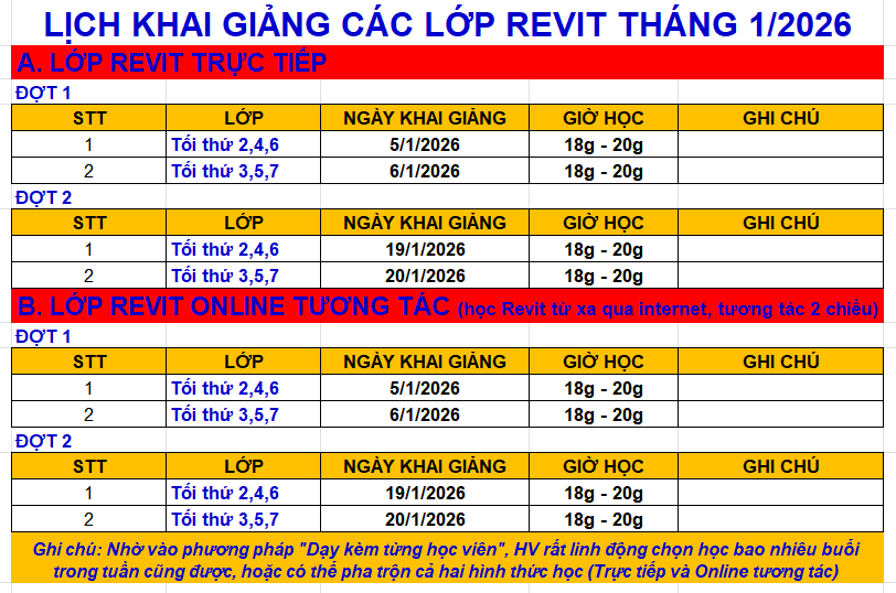 CÁC KHÓA HỌC REVIT THÁNG 11,12 NĂM 2025 & THÁNG 1/2026